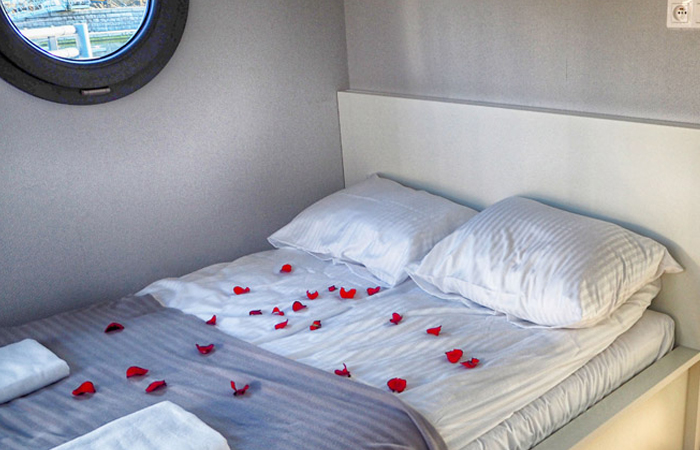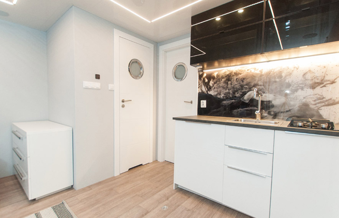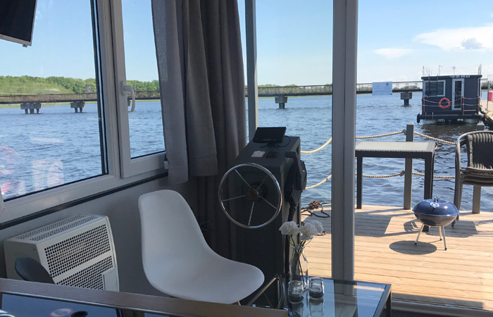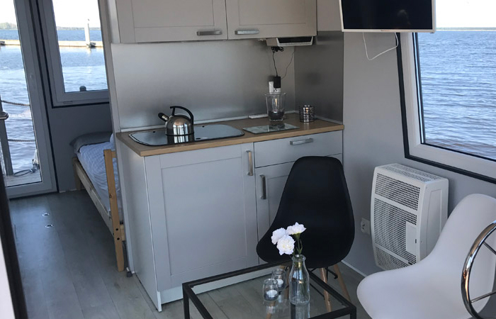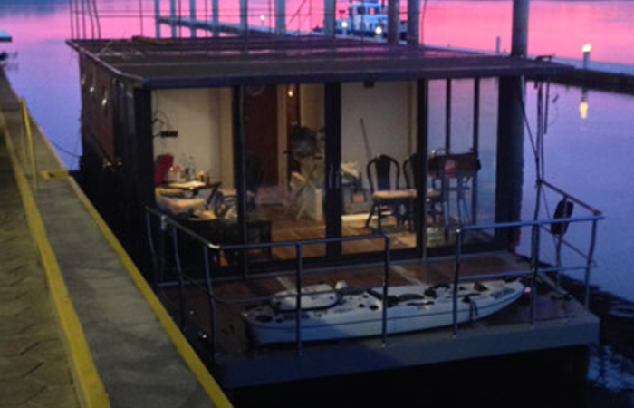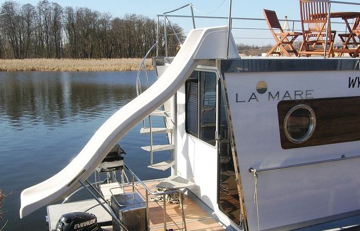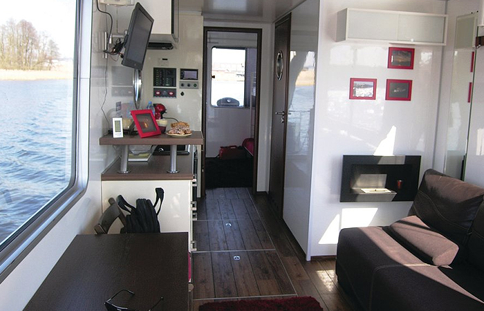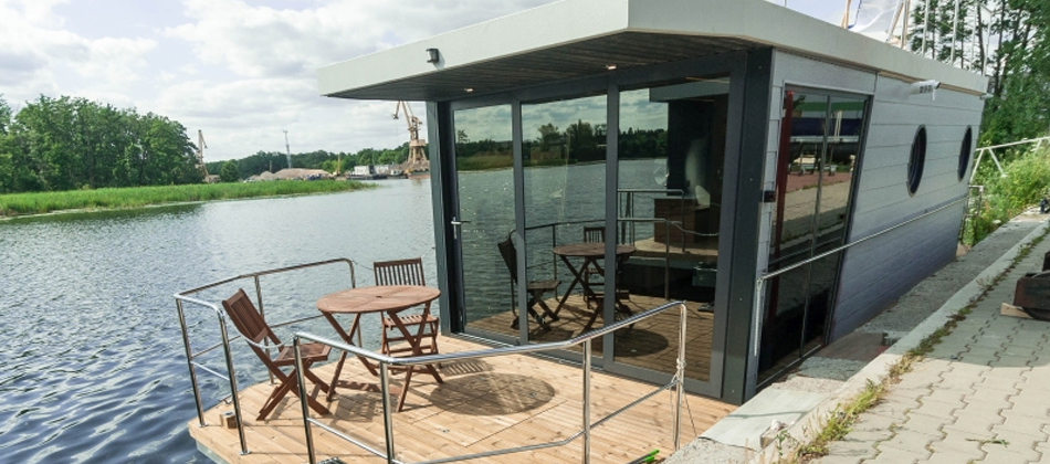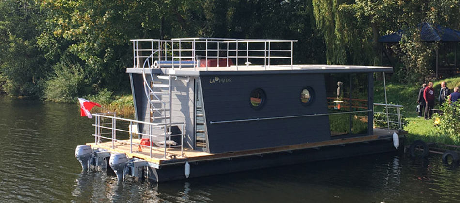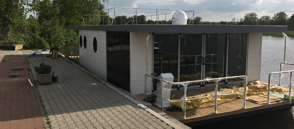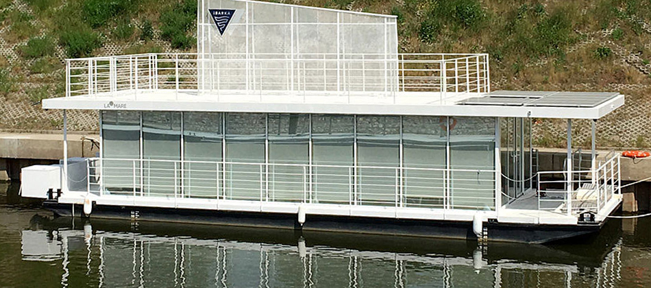 Enhet med en bredde på 5 m med eksterne broer ~ 0,25 m, lengde 12 m, total høyde 3,40 m, høyde over vannnivå 2,65-2,80 m avhengig av lasten, dypping om 0,45m, polyetylen flyter. Strukturer stål - katamaran. Boareal 34,5 m2, bue terrasse 13,2 m2, akter terrasse 6 m2. Enheten er beregnet til svømming på elver, kanaler, innsjøer og på kystvann. Termisk isolasjon. Muligheten for bruk om vinteren.