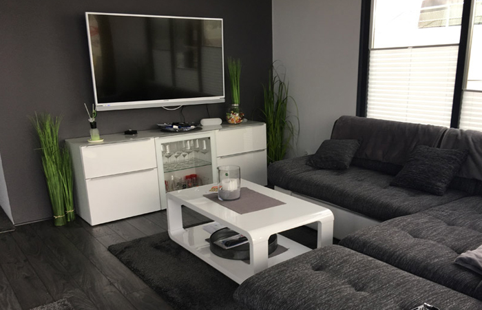 - Stue: sovesofa, bord, 4 stoler, benk, kommode