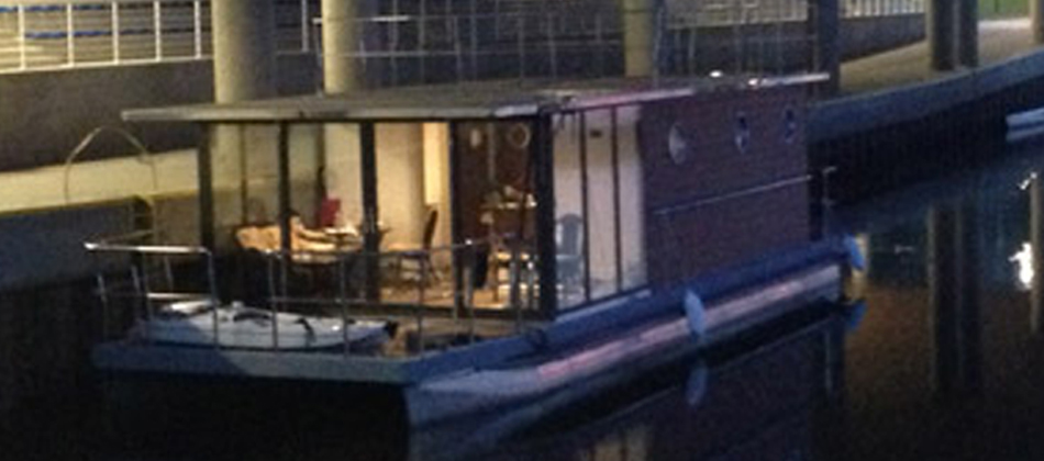 - polyetylen flyter katamaran på stålkonstruksjon - Byggingen av huset er tre, aluminiumsvinduer K-0,1, farge ral, sidevinduer, sikkerhetsglass, to runde vinduer